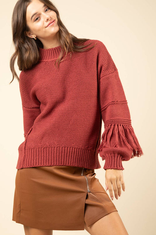 Fringe Sleeve Chunky Cozy Knit Sweater