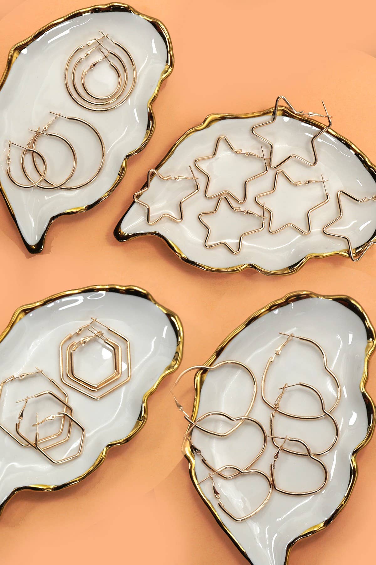 18K Stainless Steel Waterproof Tarnish-Free Basic Classic Trio Hoop Earrings. This set features three pairs of classic hoop earrings in varying sizes, allowing you to mix and match or wear them individually for different looks. Made from high-quality stainless steel with a luxurious 18K gold finish, these earrings feature a stunning bubble triangular hoop that adds depth and dimension to your look.