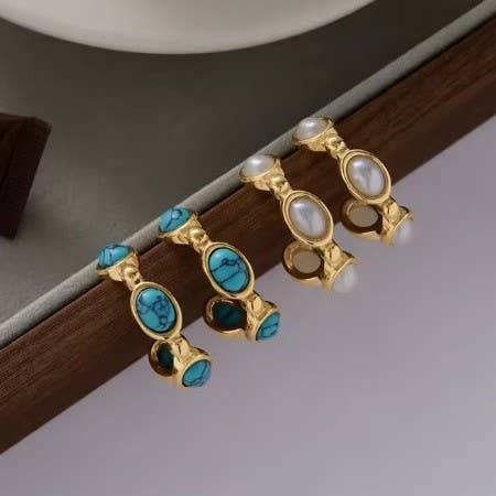 18K Stainless Steel Waterproof Tarnish-Free bubble Turq or Pearl Hoop Earrings, Made from high-quality stainless steel with a luxurious 18K gold finish, these earrings feature a stunning bubble ball hoop that adds depth and dimension to your look.