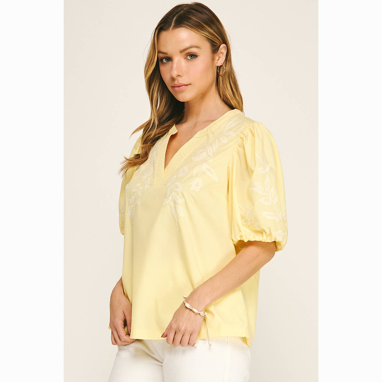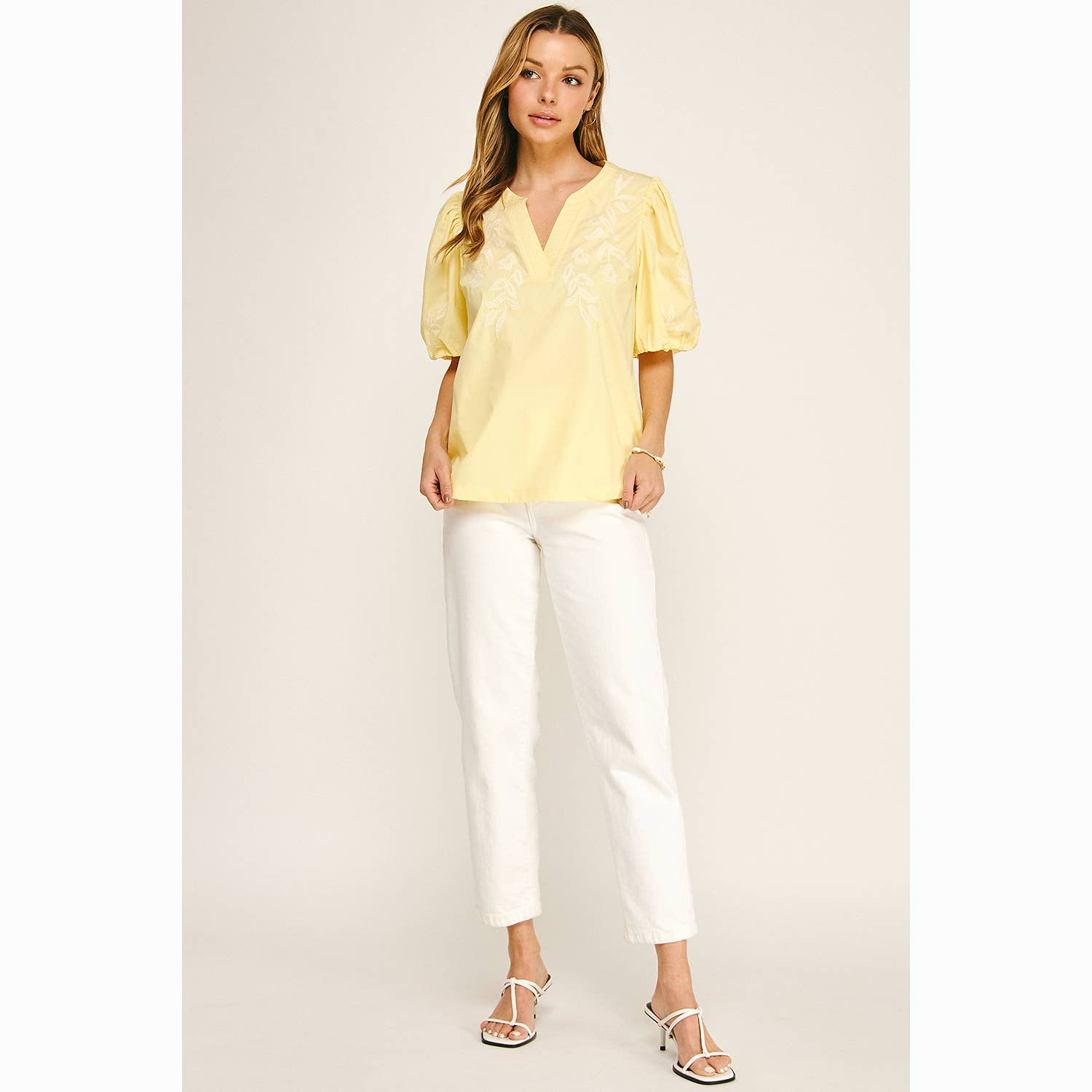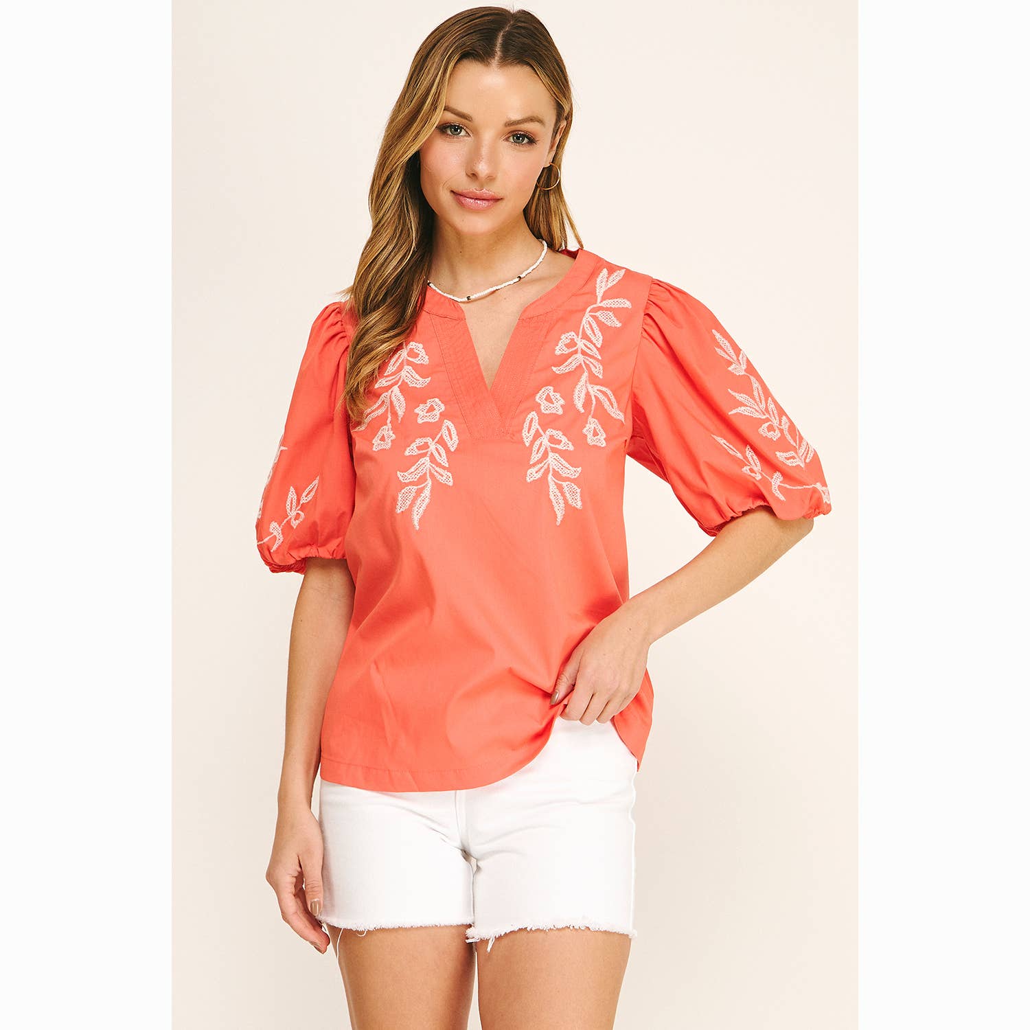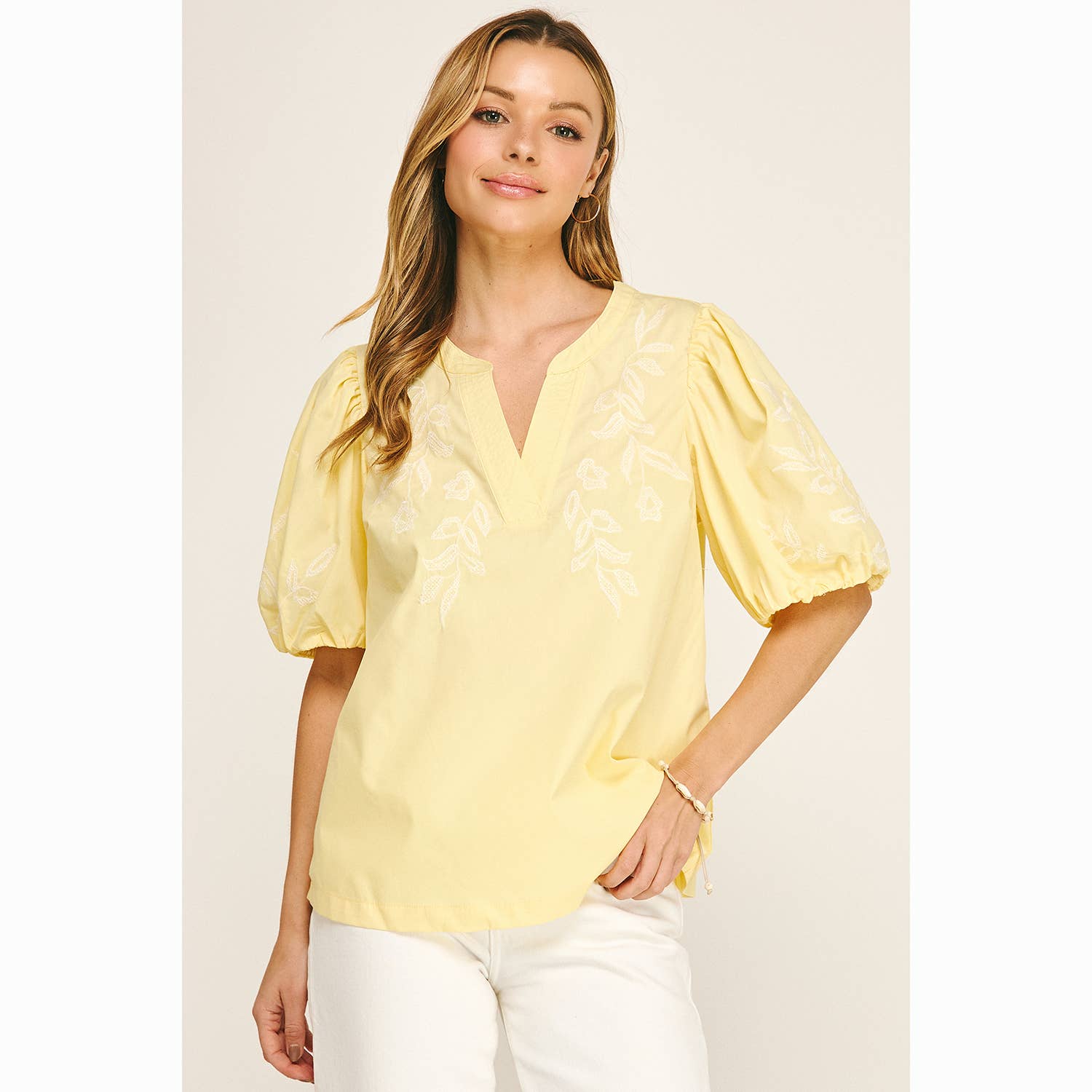 Effortless and feminine, this lightweight blouse features delicate floral embroidery and a flattering, easy-to-wear silhouette—perfect for dressing up or keeping it casual all season long.