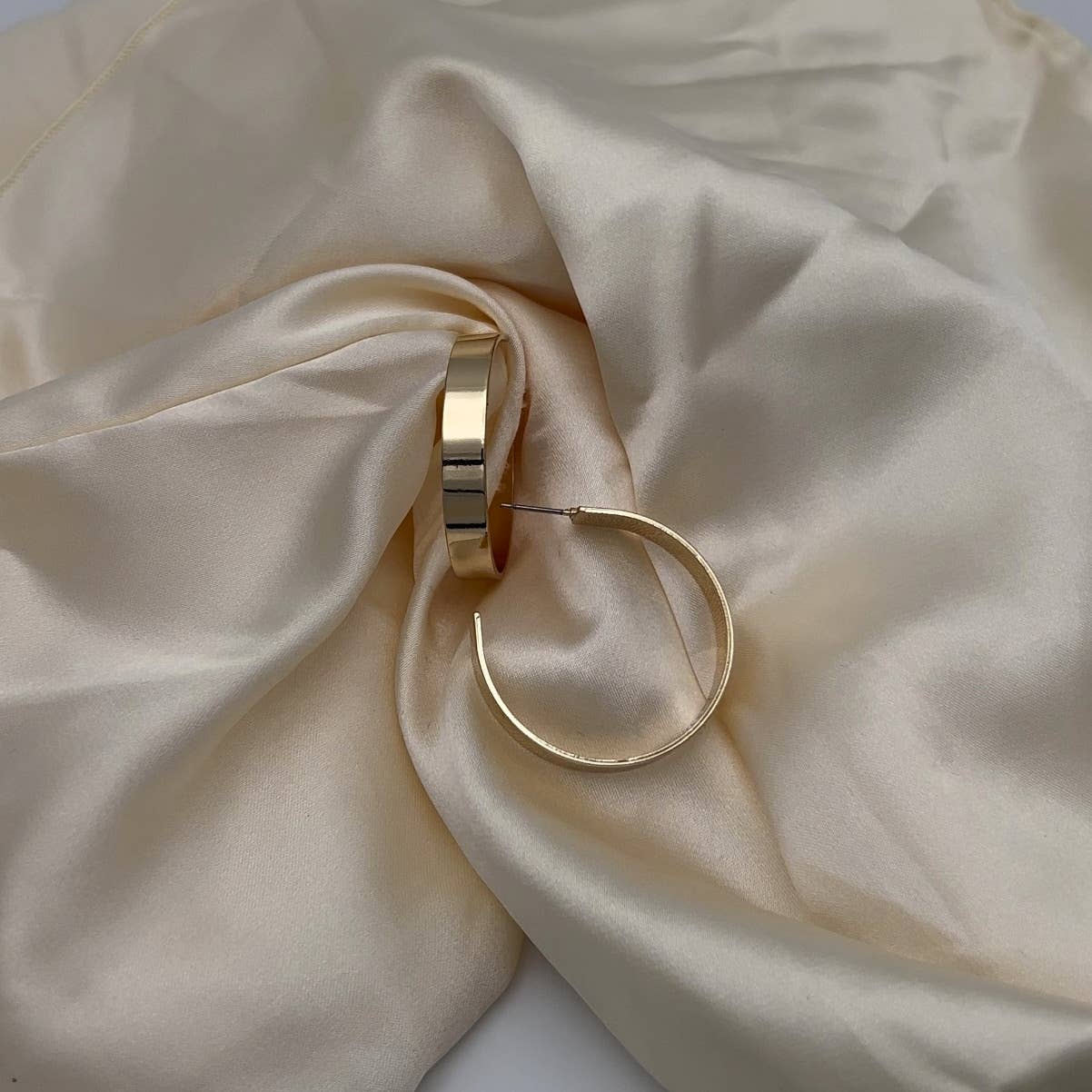 A delicate take on a classic. These large earrings feature a trendy flat hoop design, adding a touch of interest to any outfit and making them the perfect pair for everyday wear.