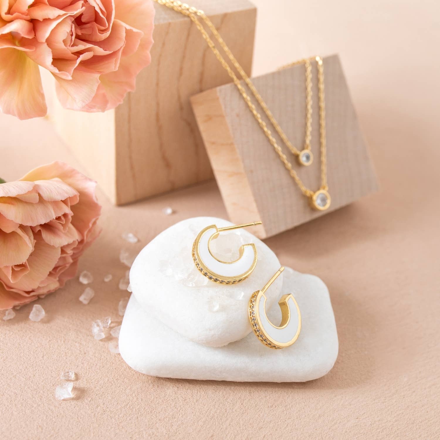 A tiny, bright hoop pops with colorful enamel and fun pave accents!