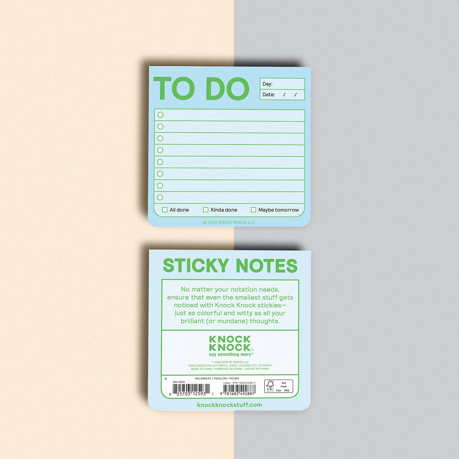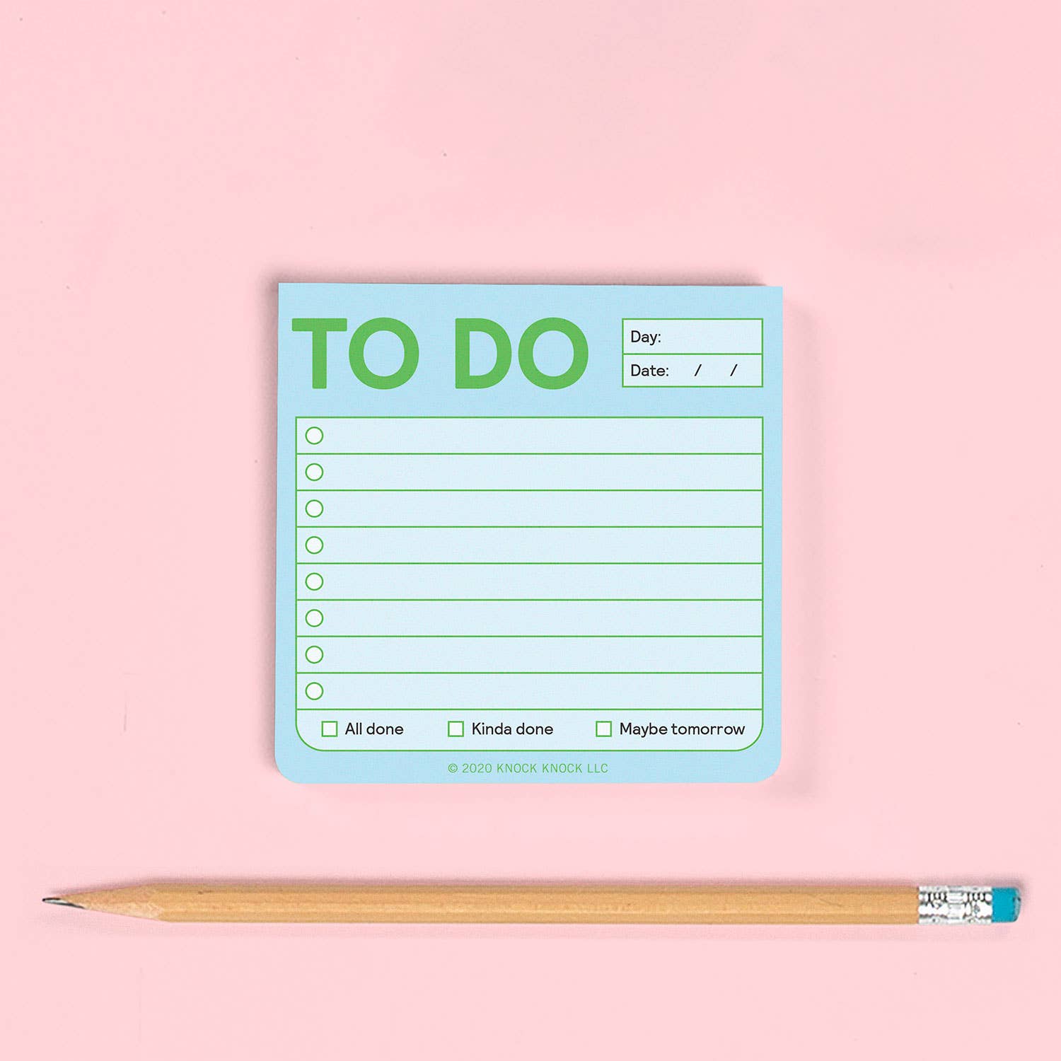 Turn your to-do's into ta-da's with this classic to-do list sticky pad–now with a swell new look! It's just as colorful and witty as all your brilliant (or mundane) thoughts.
