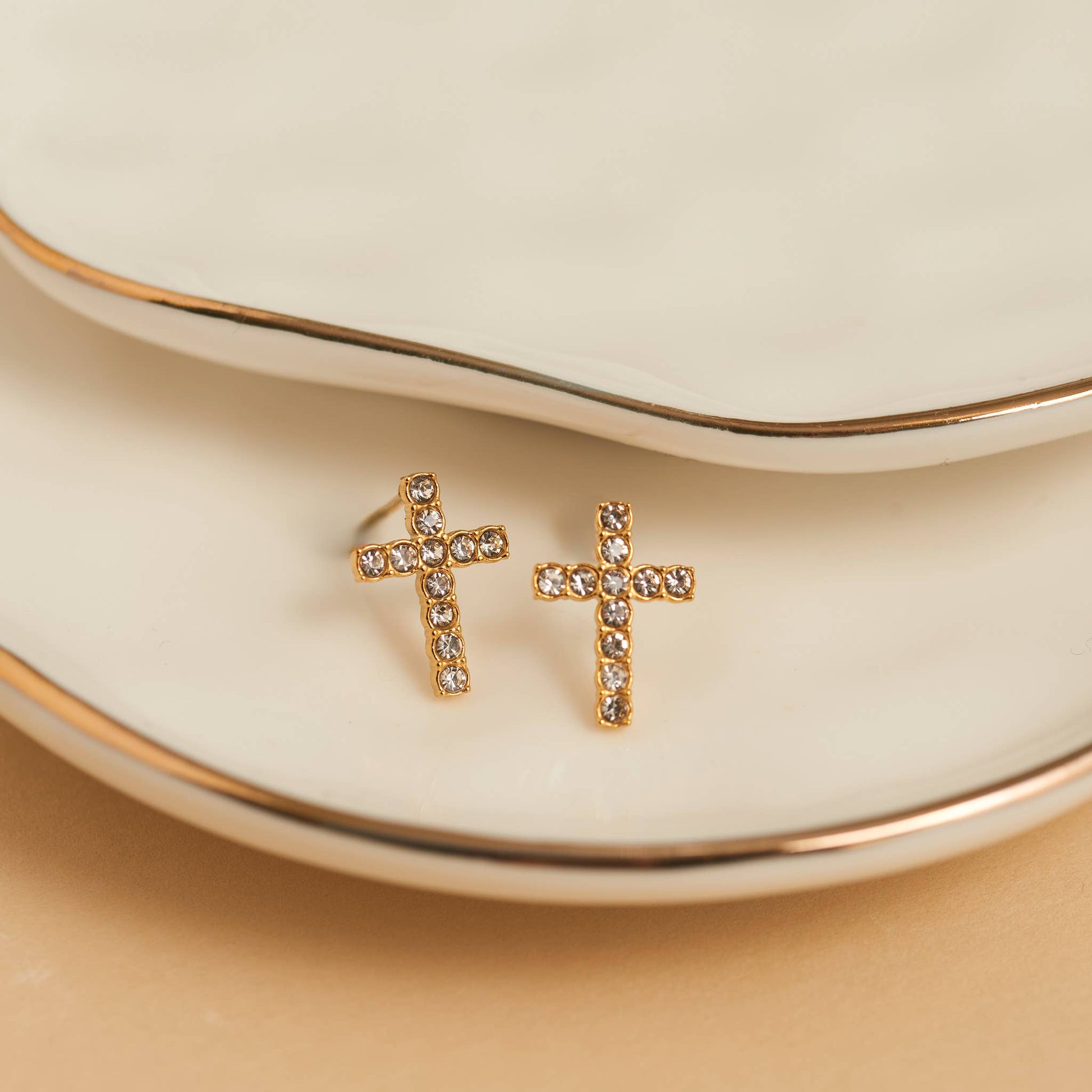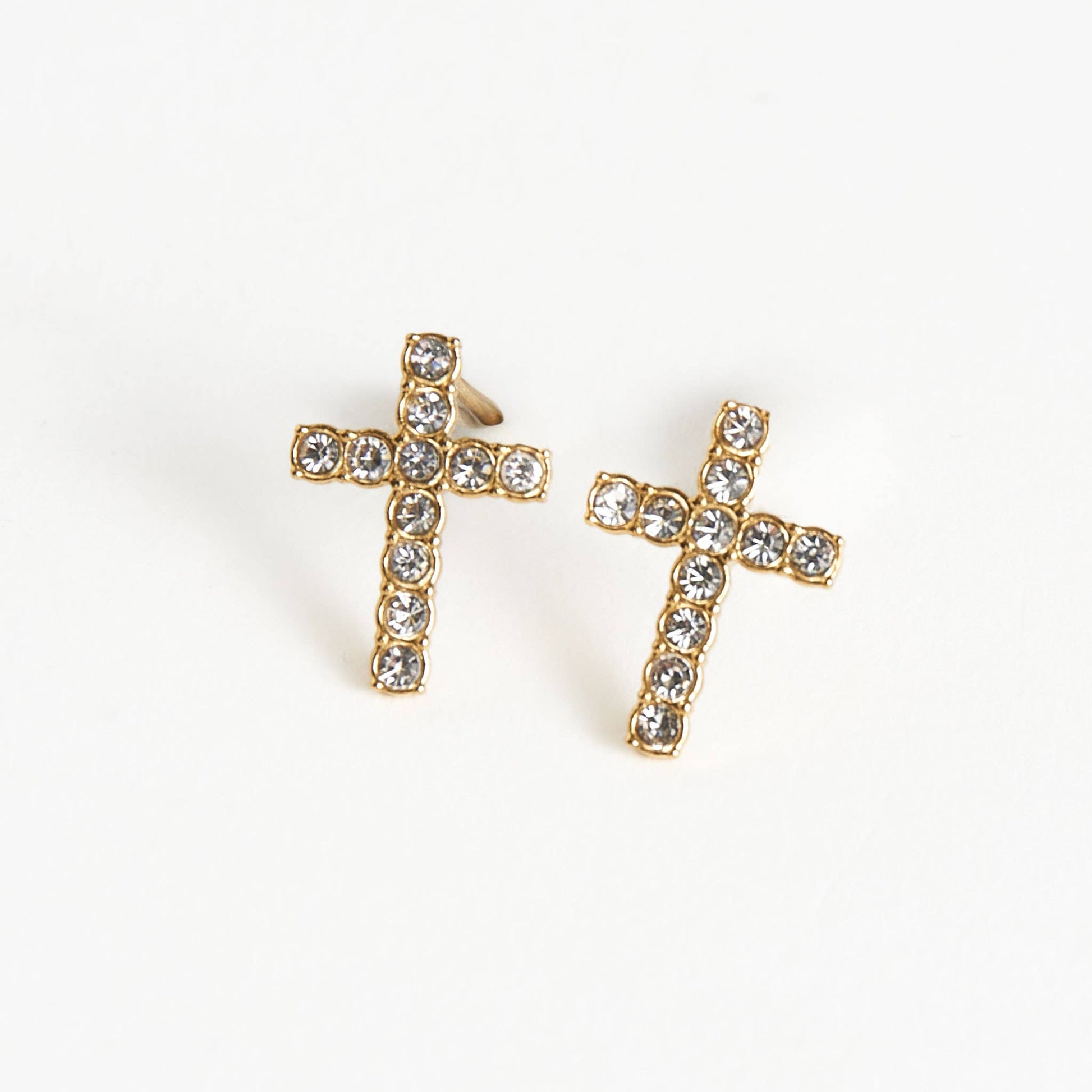 Waterproof Earrings Pave Cross Stud Gold & Steel Narelle